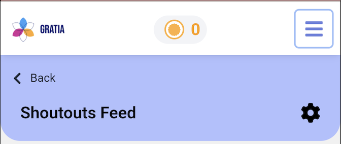 Your Shoutouts Feed is a feature within the Gratia App designed to help you connect with your team, play Gratia Games, and receive recognition for your hard work. Within your Shoutouts home page, you can: