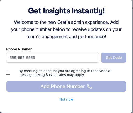 To sign in to the app, visit app.gratiahealth.com, click Admin Sign In, and enter the phone number you used to sign up. The Admin Gratia Experience can be accessed on your mobile device or computer.